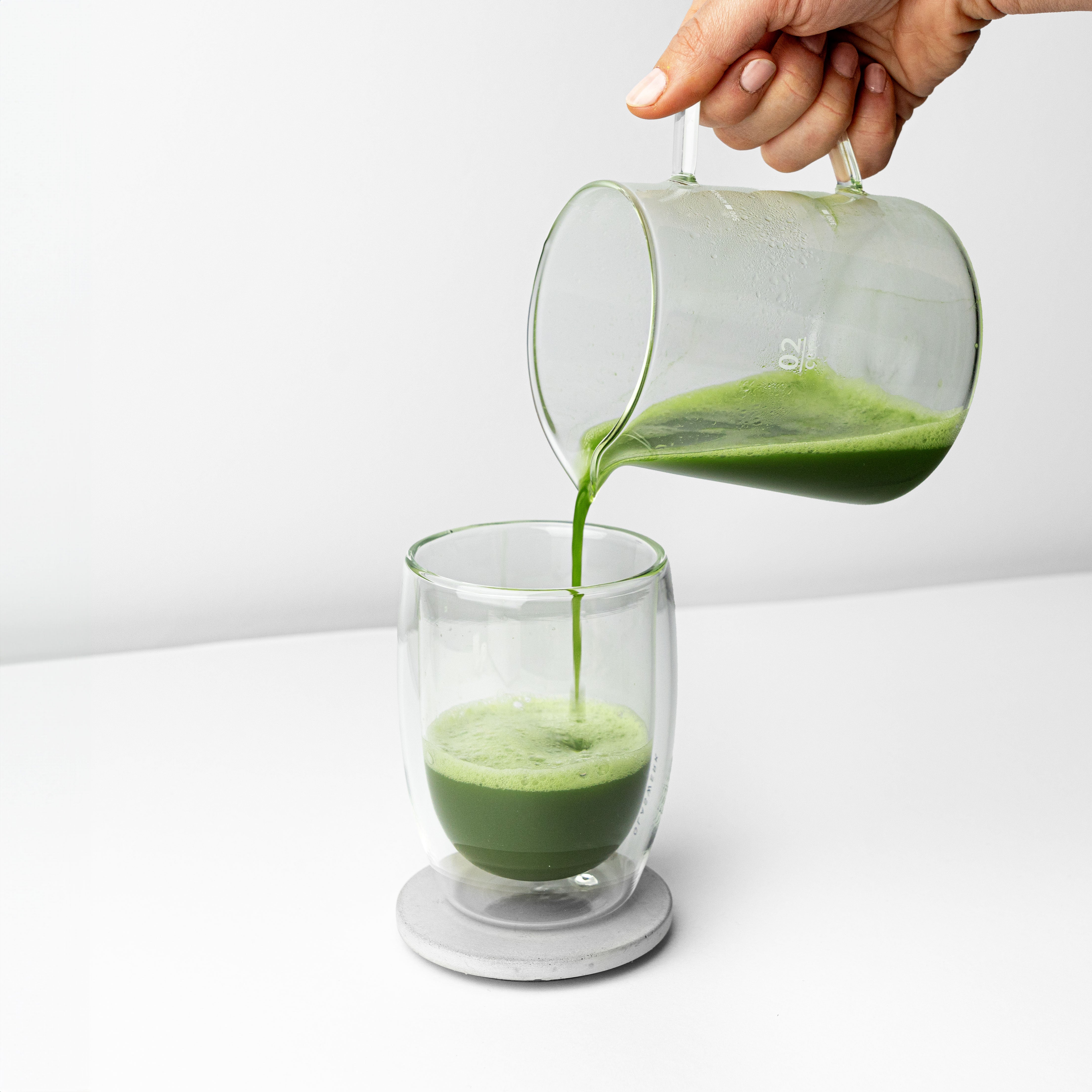Dein heißer Matcha ist fertig! Aus deiner Lieblings-Tasse oder einem doppelwandigen Glas schmeckt er übrigens besonders gut 😉.