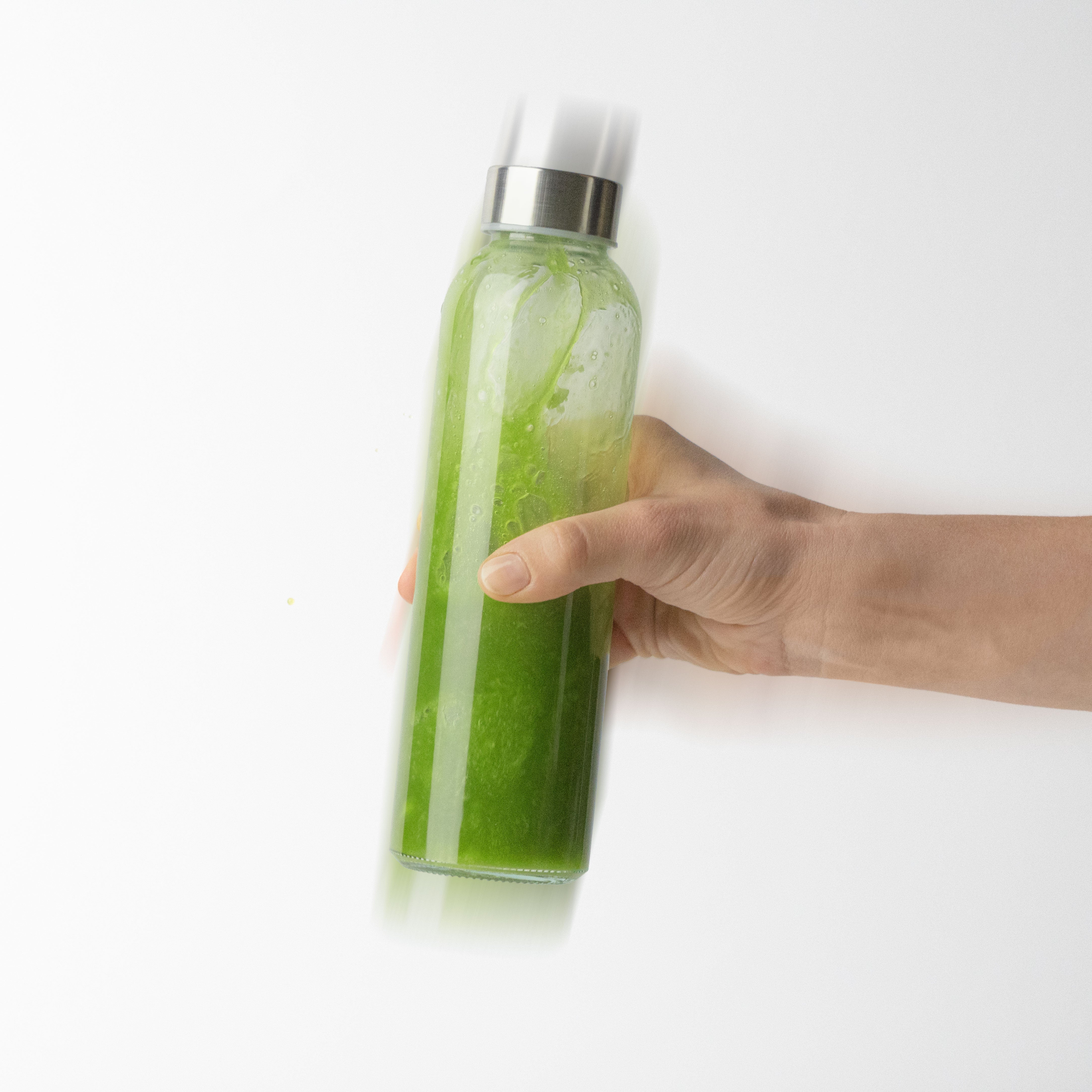 Schüttle den Shaker kräftig für etwa 20 Sekunden, bis der Matcha vollständig aufgelöst ist und eine gleichmäßige grüne Farbe annimmt.