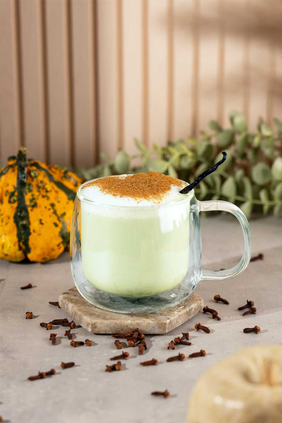 Zutatenliste für Pumpkin Spice Matcha Latte
